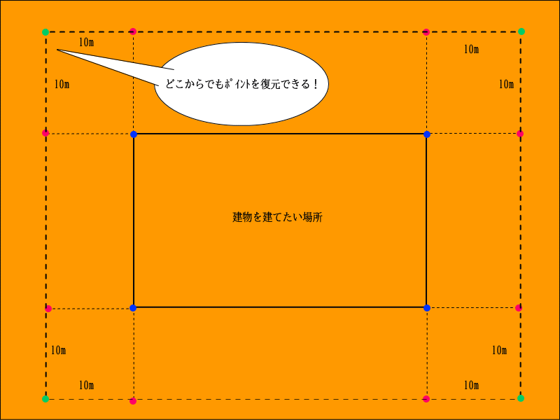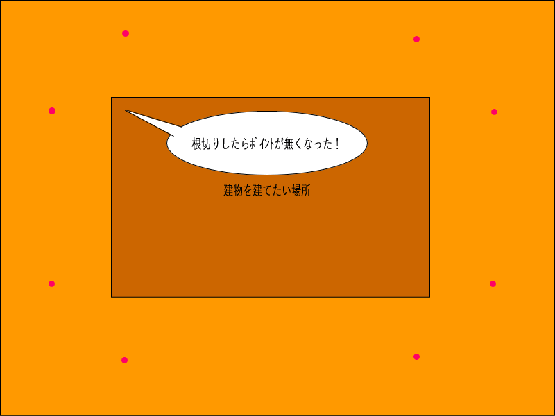 ④建物の基礎を作るために地盤を掘ったら四隅の●ポイントが無くなってしまいました!