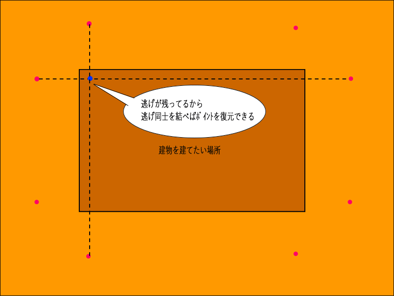 ⑨さらに実務では…●逃げを設置してすべての●逃げが消失しても復元できるようにしておきます。