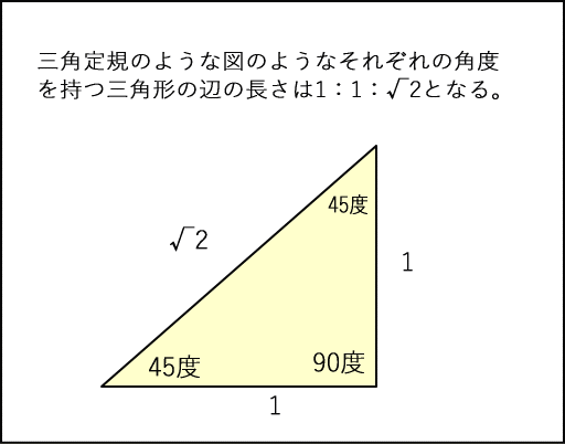 角度と距離が計算できますので、角度と距離が測定できるトータルステーションという測量機械を使って目標点の杭などが無くなってもを復元できます。√2≒1.4142です。