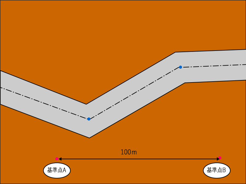 基準点Aと水平方向に100m離れた基準点Bを設置してみました。